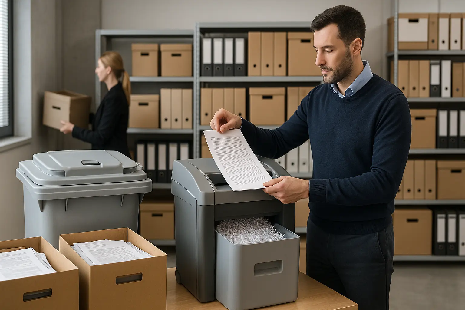 | Dossiers clients, contrats commerciaux, correspondances | Élevé (données personnelles et informations stratégiques) | Broyage sécurisé en confettis fins, rendant toute reconstitution impossible | Bordereau de prise en charge, certificat de destruction détaillant date, volume et origine |